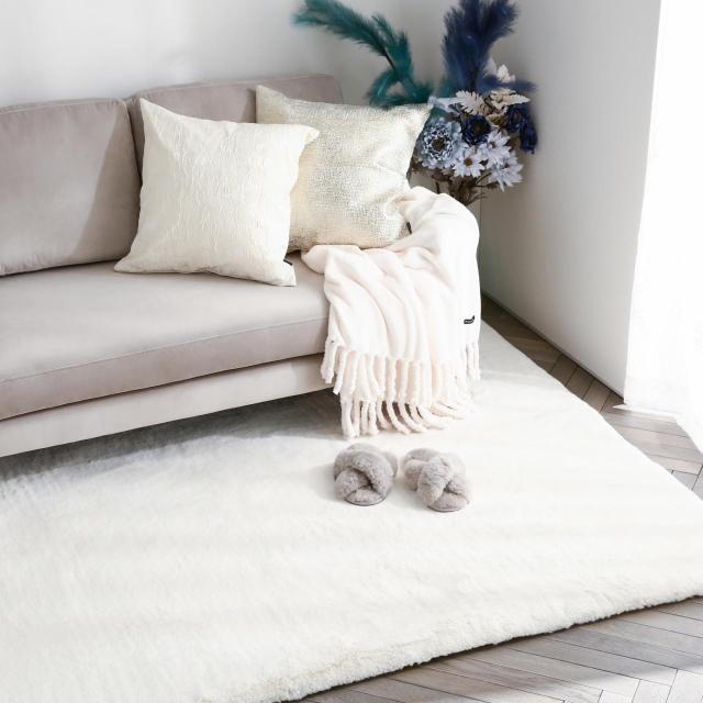 ラグマットの上で気持ちよく快適に長時間過ごすことができます。裏面には滑り止め加工が施されているため、軽くてもずれにくい仕様で安心です。