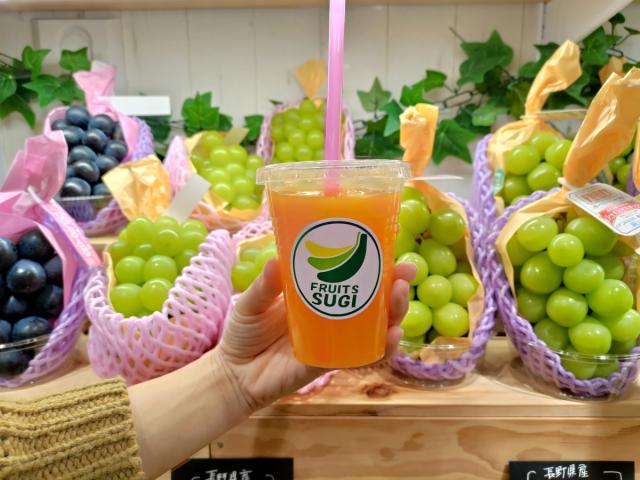 「ぼんご」と同じく行列ができるほど人気のお店が「フルーツすぎ」。季節のおいしい果物を直接販売するだけでなく、旬な果物を使った季節ごとのパフェやジュースが遠方からもお客さんが訪れるほどファンが多いお店なんです。