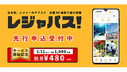 ORIGRESS PARKSは12月21日に、日本初となるレジャー施設で遊び放題のサブスクリプション・年パスアプリ「レジャパス!」先行予約申し込みの受け付けを開始した。あわせて、2022年1月11日まで、先着1000名限定のサービス開始記念キャンペーンを実施している。