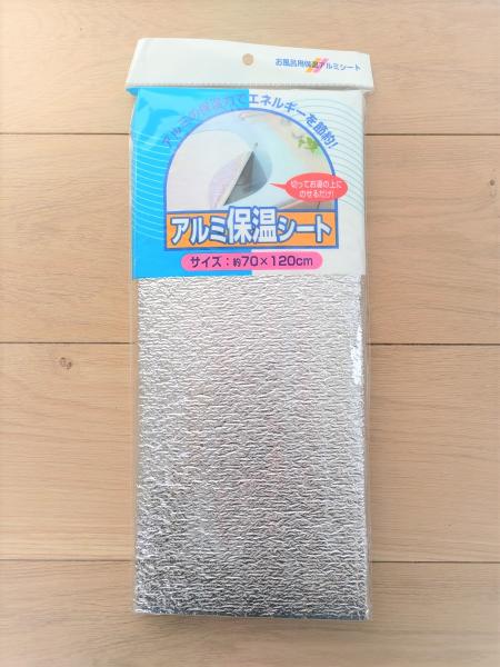 そんなときに便利なのが「アルミ保温シート」。サイズは約70×120cmで、お風呂の大きさにあわせて切って使うことができます。