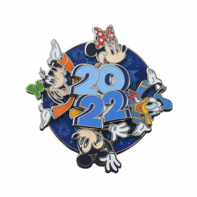 丸いピンは、中央に「2022」で背景にパークのモチーフ。