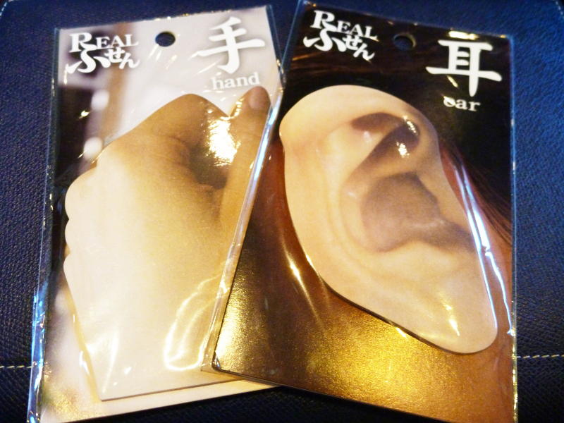 手と耳の写真が印刷されたふせん。何に使えそうかと考えてみましたが、借りた本にこそっと貼っておくという悪戯しか思いつきませんでした。