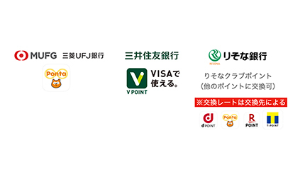 三菱UFJ銀行(メインバンク プラス ポイントサービス )・三井住友銀行(SMBCポイントパック)・りそな銀行(りそなクラブ)の関係