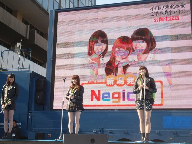 このイベント、ステージライブが二回あって、二回目はラジオ番組の放送も兼ねていまして、有名イタリアンシェフ落合務さんや平野レミさんが料理をする後ろでステージング!というなんというか他では絶対見られないシチュエーション!お二人とも料理しながらもNegiccoのステージにノリノリで、見ているこちらも嬉しくなってしまうほど。Negiccoも、名曲『ねぎねぎRock』でネギ渡しという鉄板なムーブで応えます。さすがにポーンと投げることはしませんでしたね(笑)。