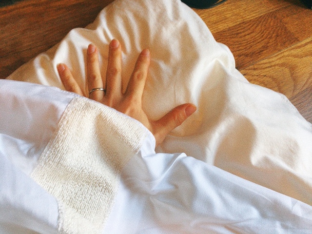 まず、掛け布団カバーを裏返し、掛け布団にあてがいます。そしたらカバーをひっくり返すだけ!