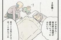 おじいさんとおばあさんのももたろう子育て奮闘記。第97話目のテーマは「熟年離婚(5)」です。おばあさん、友人宅での生活が始まりましたが、やはりおじいさんのことが気になってしまうようです。