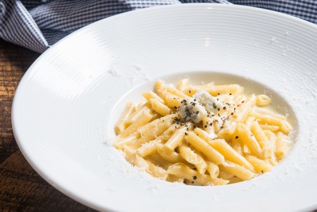 チーズバルが選ぶ、こだわりのチーズをふんだんに使用した芳醇な『クワトロフォルマジペンネ』は、世界有数のチーズを4種も使用し、濃厚な風味と口当たりはチーズ好きにはたまらない逸品に仕上げられています。しっかりした赤はもちろん、フルーティーな白ワインとのマリアージュもおすすめです。