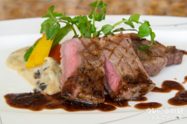 牛サーロインのグリル トリュフソース 彩り野菜と共に|“クリスマス・ファンタジー”ディナーセット|東京ディズニーランドホテル「ドリーマーズ・ラウンジ」 ©︎Disney