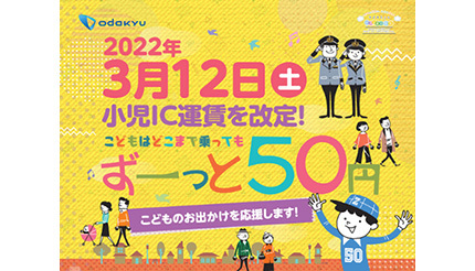 小田急電鉄は2021年11月8日に発表した、「小田急線の小児IC運賃全区間一律50円」をはじめ、子育てしやすい沿線環境の実現に向けた小児IC運賃低廉化を今年3月12日のダイヤ改正にあわせて開始する。