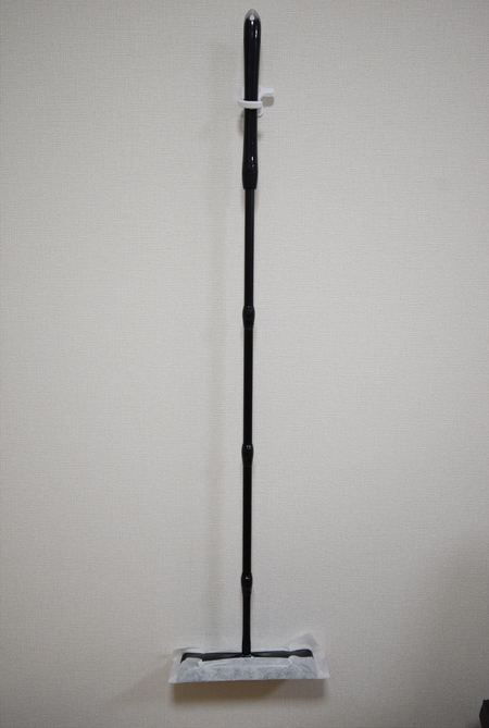 収納場所に困る掃除用具の代表格、モップやフローリングワイパーを立てかけられるアイテム。設置は裏側のシール部分を壁や家具につけるだけでOKという手軽さも魅力です。
