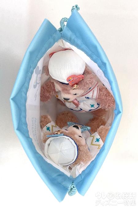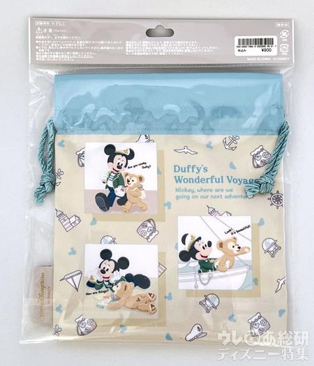 ミッキーの横には、船長さんのお帽子、ダッフィーの後ろには、可愛いダッフルバッグが置いてあります。