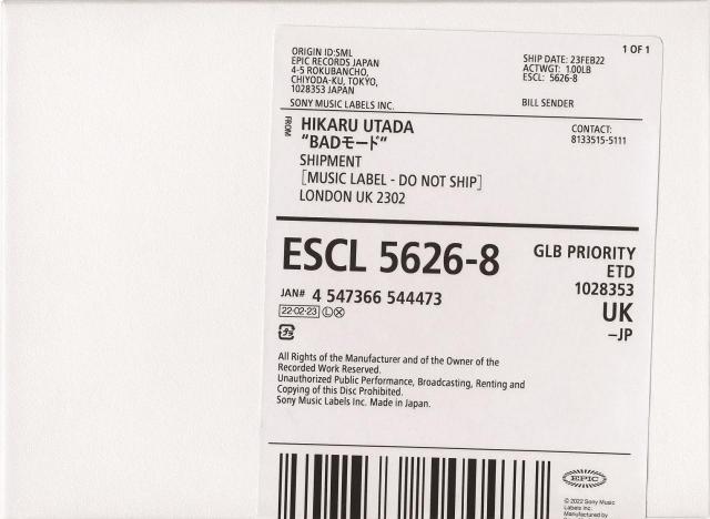 宇多田ヒカル『BADモード』初回生産限定盤ジャケット