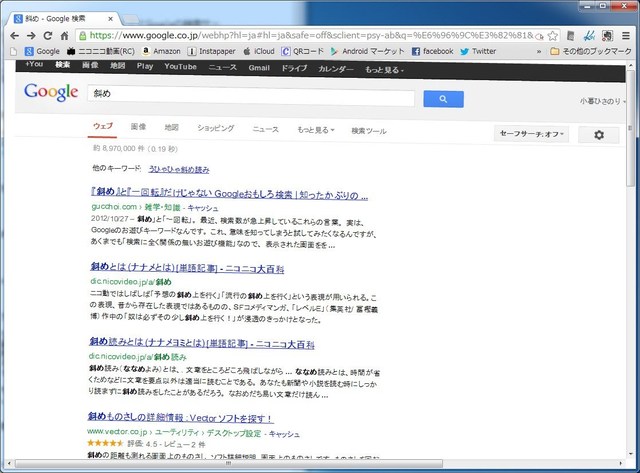 こちらは「斜め」で検索した場合。微妙に斜めってる!