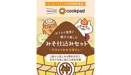 商品開発のきっかけは、峰村商店がおこなっている、子ども連れの家族も多く参加する味噌仕込み体験のイベント。クックパッドとの協業のなかで、首都圏在住の人にも味噌仕込みをモニターとして体験してもらいインタビューを実施したところ、知育にまつわるキーワードが出てきたため、単なる味噌仕込みセットではなく、説明書にイラストを多用し、クイズを加えるなど、小さな子どもでも親しみやすく使いやすいセットに仕立て、発売することになった。