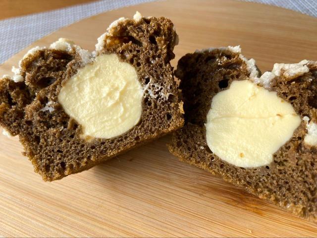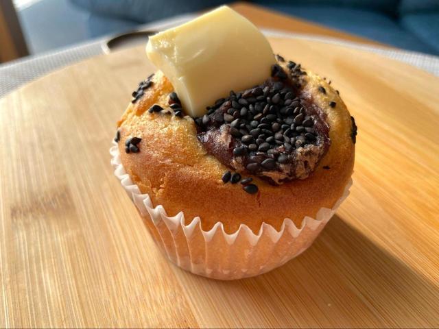 こちらはそんな、糖質低減マフィンのひとつ、小倉バターです。豪快に乗ったたっぷりのバターが特徴のマフィンです。