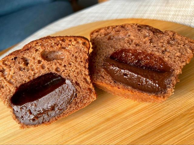 断面を見ると、トッピングのあんこが生地の中央部分にまで。