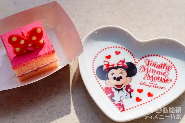 ミニーをイメージしたケーキで、スポンジケーキにストロベリージャムとストロベリークリームをサンド。