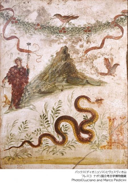 『特別展「ポンペイ」』《バックス(ディオニュソス)とヴェスヴィオ山》フレスコ ナポリ国立考古学博物館蔵 Photo©Luciano and Marco Pedicini