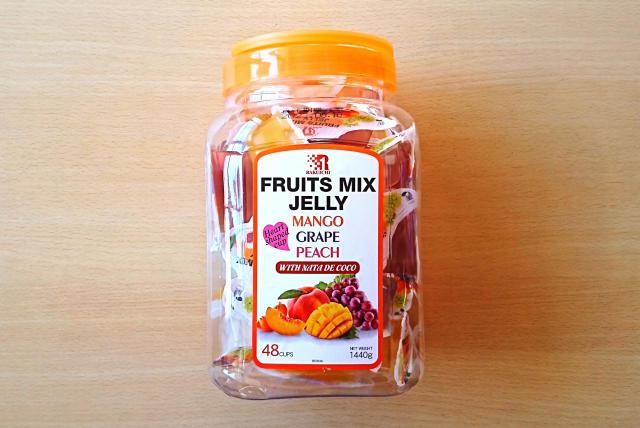 コストコには、仕事の合間や3時のおやつなどの間食にちょうどいい、お手軽なヘルシースイーツもあります。こちらの「フルーツミックスゼリー ナタデココ入り」は、お菓子売り場にある、台湾産のこんにゃくゼリーです。