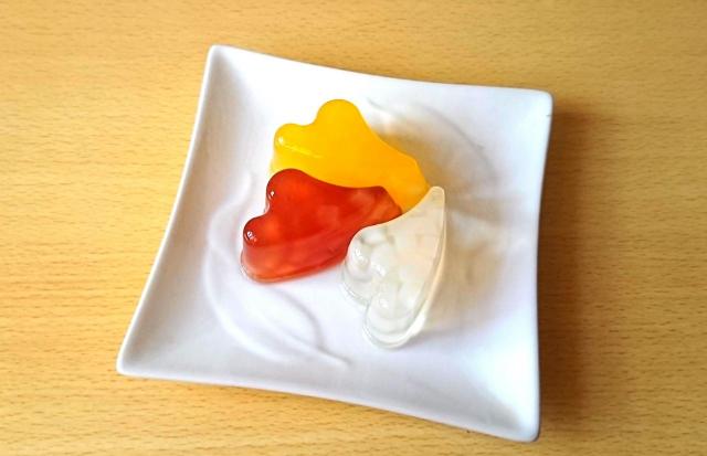 3つの味は。いずれもクセのない優しい甘さ。こんにゃく粉を使ったゼリーとはいえ、食感は柔らかめで、ひと口でも難なく食べられます。ゼリーの中に散りばめられた細かいナタデココがGOOD!