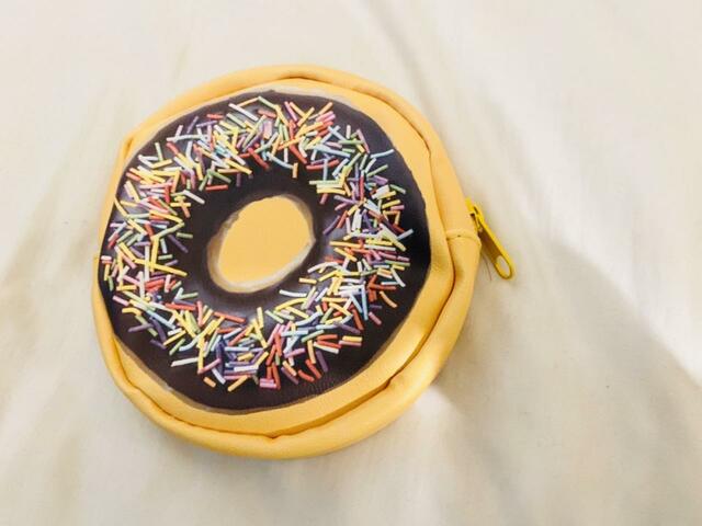 ポーチはカラフルなカラースプレーが散りばめられた、チョコレートドーナツの形を模したデザイン。