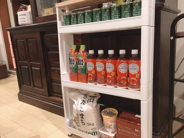 キャスター付きなので、お米など重いものを載せても軽々移動できるので便利です。むしろ、1番下には重いものを入れておいた方が安定するかも。