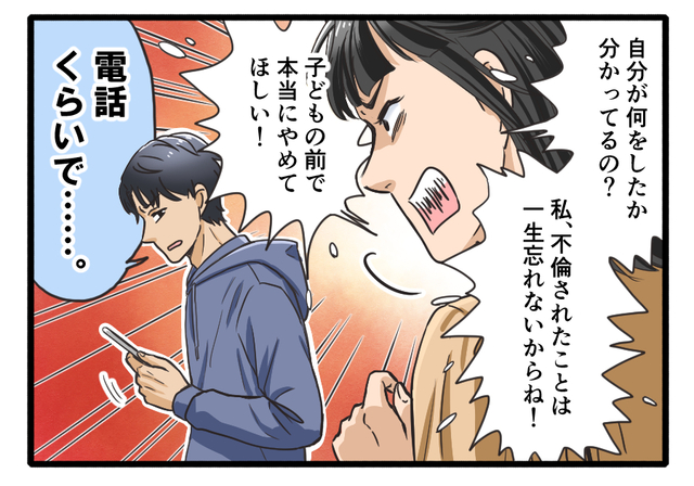 何年経とうがされた側にとって不倫は許せるものではなく、「電話くらいで」と口にできる配偶者の気持ちが信じられないですよね。
