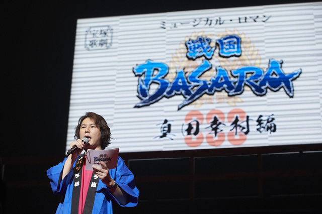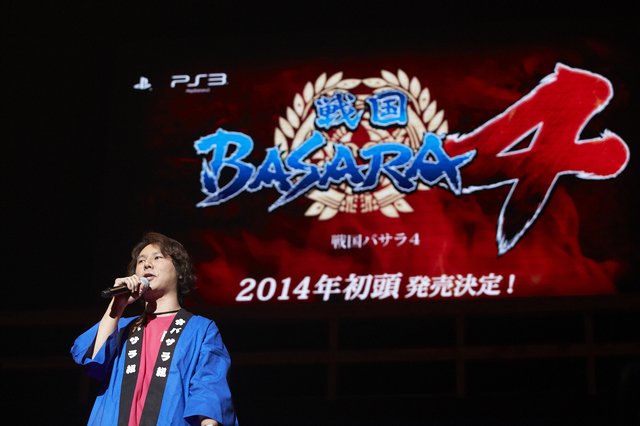 ……と、ここでステージに登場したのが、原作の製作を手がけるカプコンの小林プロデューサー。戦国BASARAの最新情報として、最新作「戦国BASARA4」が2014年初頭に発売されることが発表になると、会場からはこの日一番大きなどよめきが起こっていました。