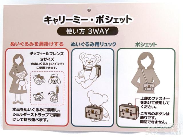 東京ディズニーシーでは、2022年1月13日より、ダッフィーのお顔の飾りが付いた、3WAYで使える「キャリーミー・ポシェット」を販売中。