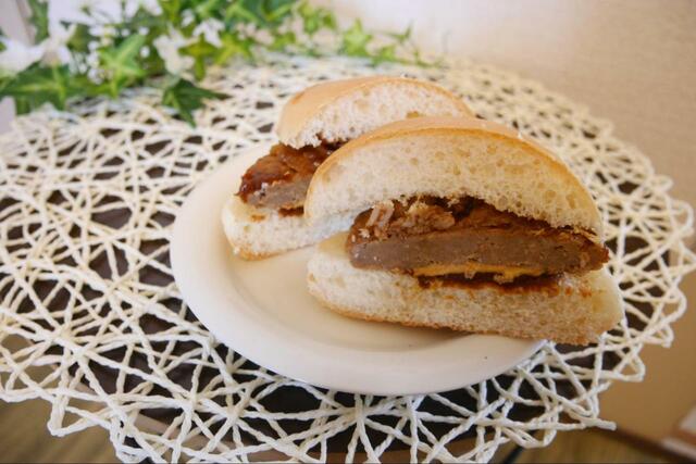 ふわふわのバンズにチーズ、ソース、パティ、牛肉と玉ねぎを炒めたものが入っていました。