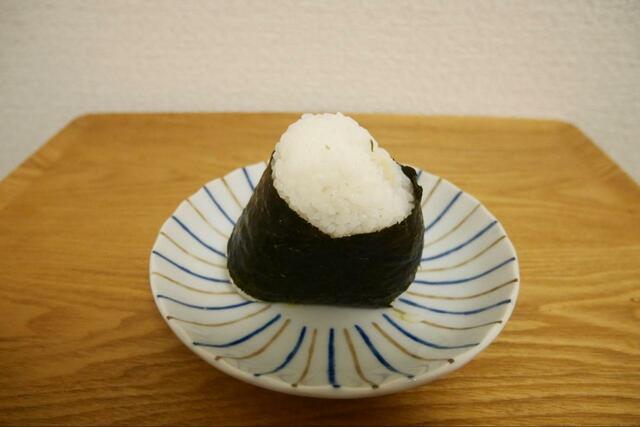 開けてみると、ころんとした丸っこいおにぎりが出てきました。海苔はすでに巻かれていて、しっとりしています。