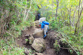 両手が塞がってしまうので、道が険しくなってきたら、いったんしまってください。
