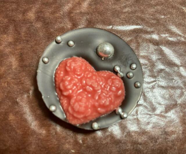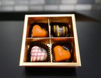 ビターチョコレートの上にフランボワーズ風味のハート型のチョコレートをトッピング。