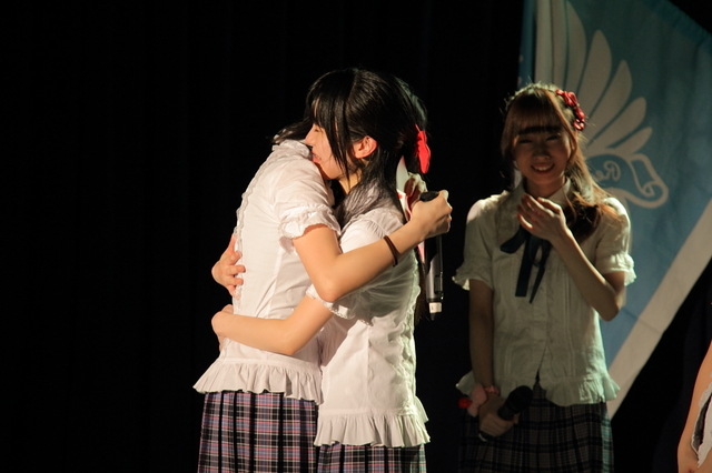 そしてあゆみさまは、心の底からのスピーチを聞かせてくれました。最初はオーディションに受かるわけがない、と思っていたこと、悩みながらフラップにいる中で、「自分がここにいてもいい」「自分を受け入れよう」と思えるようになったこと。グループの中で、心が成長していったことをそのままの言葉で伝えるあゆみさま…。それでいて、ステージ前にわらわら~と寄ってきたファンの方に「えー、ちょっと目障りなんでどいててもらえます?(笑)」と、いつものあゆみさまキャラを見せてくれたり、うーん、いい子だ…。アンコールは、「いっちー!あゆみ!」のコール、というか絶叫がフロアにこだましておりました。最後に披露されたのは、今回最初に掲載した「オープンスクールの歌」。2か月半のあいだに、完全に大事な持ち歌として披露出来るようになっているんです。ああ、しっかり育っているなぁ…。でも、あゆみさまといっちーの卒業は惜しいなぁ…。