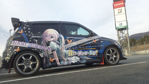 そのままサーキットを走っていても違和感がなさそうな、スポーツタイプの痛車。作品・キャラクターへの愛とともに、自動車への造詣の深さも伝わってくる“趣味人レベル”の高い一台だ。