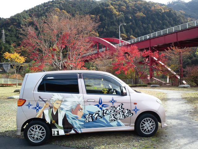 「痛車の中では数少ない少年漫画の男性キャラを使用しています。ステッカーを貼る場所などはキャラの言葉などストーリーを含ませて仕上げました。BLEACHファンにしかわからないステッカーの仕上げに注目してほしいです」