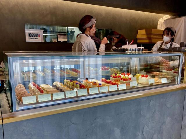 外観も内観も明るいグレーで統一された、シックな店舗。落ち着いた店内に鎮座するショーケースのなかで、焼き菓子とケーキが出迎えてくれた。