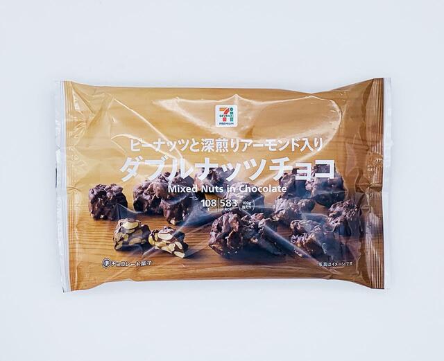 まずはセブン-イレブンの「ダブルナッツチョコ」からいただきます。ピーナッツとアーモンドの2種類のナッツを使用した香ばしいチョコレートで、ナッツ特有のゴロゴロとした食感が味わえます。