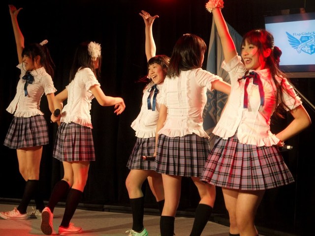 そして、まゆたんとちゃんちえの組み合わせ、なかなかレアな気がします。二人ともパワフルなパフォーマンスが共通点?二期生の二人、もっふもふでかわいいですよねー。早くも完全にフラップの一員になってる感じがすばらしい!そして最後は、なぜかまいまいだけソロショット!かっこいいぜ、まいまい!っていうか、こう見ると、ほーんとフラップって魅力的な女の子ばっかり!みんな可愛いです。