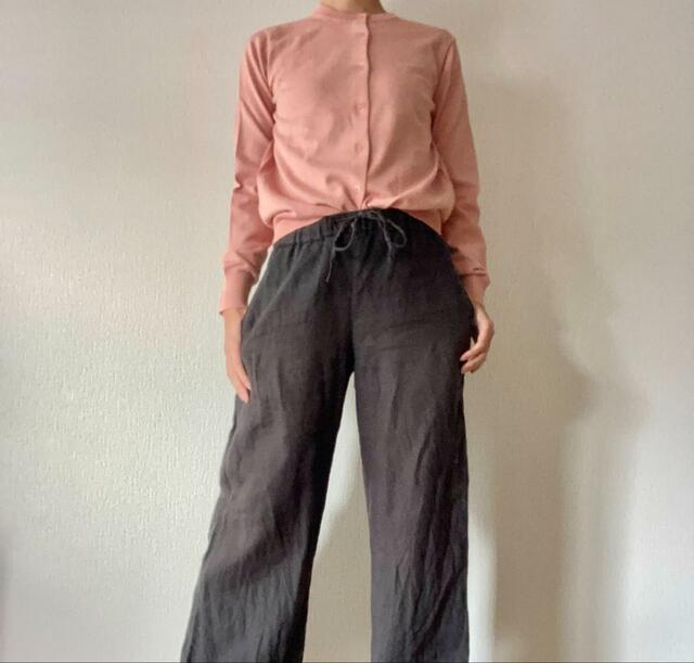 麻のパンツを組み合わせることで、カジュアルすぎない大人スタイルが完成しました。