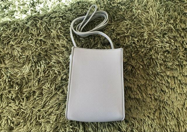 GUにも豊富なアイテムが揃っています。今回はライトブルーのスクエアネックポーチ(税込1,690円)をご紹介します。