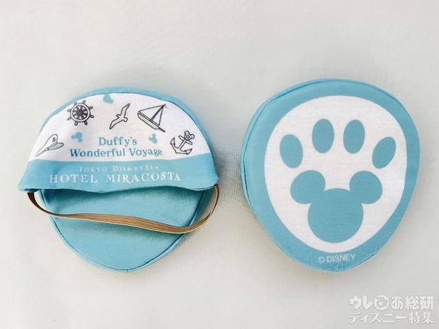 ミラコスタのロゴ入り、裏はダッフィーの足型のデザイン。