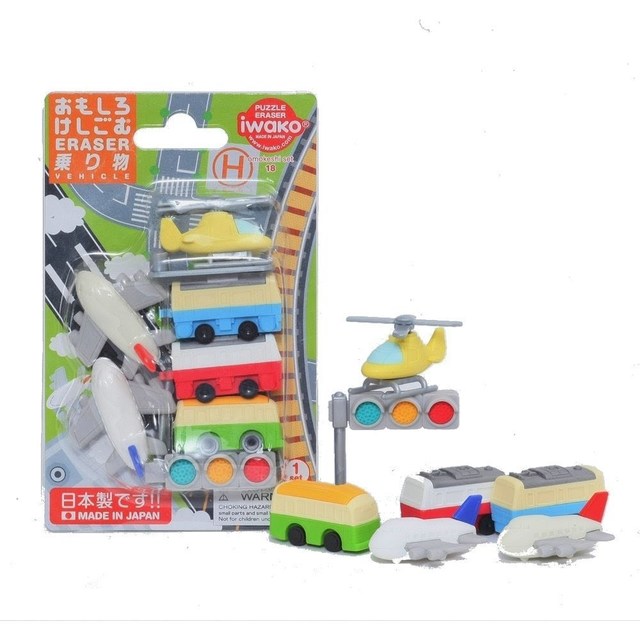 飛行機、ヘリコプター、バス、電車、信号機など、男の子が好きそうなラインナップです。子どもたちが交通ルールを勉強するのにもいいかも。消しゴムというよりおもちゃに近づいていますね。