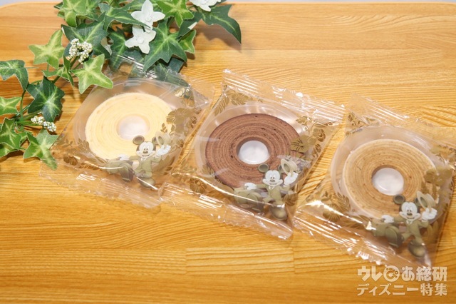 バウムクーヘンは、プレーン、チョコレート、プラリネの3つの味。