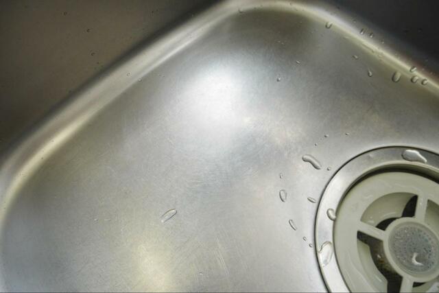 まずはシンクの汚れを落とし、水気をふき取ります。