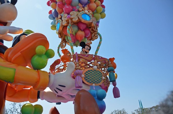 新しいお昼のパレード『ハピネス・イズ・ヒア』は、ディズニーの仲間たちのさまざまな“ハピネス”をテーマにした、30周年記念にふさわしい心踊るパレードです。全長500m、13台のフロートに、55名のキャラクターが登場します。