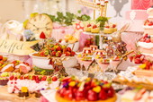 1月~2月のテーマは、「不思議の国のいちご畑」。旬のフルーツいちごを贅沢に使ったショートケーキやモンブラン、タルト、ティラミス、ムース、パンナコッタ等、20種類以上のデザートと軽食を好きなだけ食べられる。