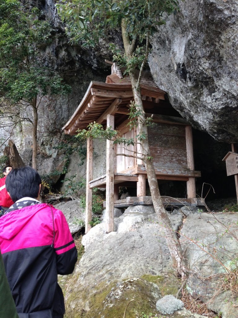 投入堂が見えます。この山登りの途中、一度も投入堂は見えません。登り切ったものでなければ見られない投入堂。感慨もひとしおです。