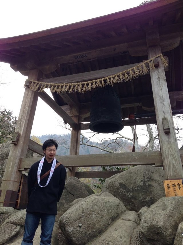 地蔵堂のさらに上にいくと、鐘楼堂があります。2トンもある鐘が、崖の部分にあります。この鐘は付くことが可能。僕も鐘をつかせてもらいました。とてもよく響く鐘の音。ここから投入堂まではあと少しとなります。