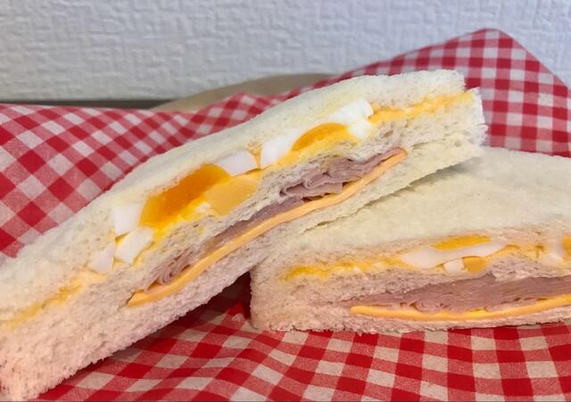 内容は、卵サラダ・ゆで卵・ハム・チーズ・マヨネーズがメインのソースです。